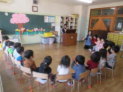 元気いっぱいはじめの言葉、歌でおたのしみ会の幕開けをしてくれました。