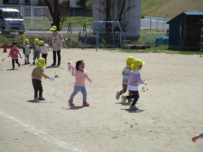 ひよこ1組、2組を合わせて、クラス替えをして、あひる1組12名、あひる2組10名でスタートしました。新しいクラスにも慣れ、友達、先生とやりとりを楽しみながら遊んでいます。