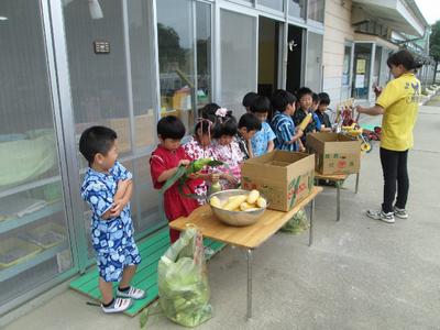 年長さんは、最後にプールの水を育てている野菜や花にかけてくれました。遊んだ水を少しでも無駄にしないように頑張ってくれました。