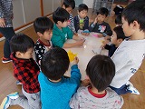 5歳児・4歳児・3歳児のクラスに分かれ、保育所の子供たちが楽しく遊べるようにと2年生の子供たちが色々な事を考えてくれました。