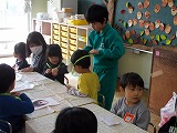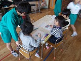 絵本を読んであげると、話に引   たりパネルシアターを楽しんだりし