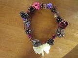 5歳児のクリスマスリース     サツマイモのつるとまつぼっくり