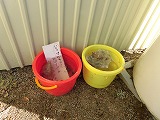 「寒いね~。」「あっ!実験したバケツ、どうなったかな?」と、見に行くと・・・