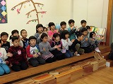 今日は、「1月の誕生会」でした。今月は3クラス合同でした。