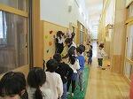 保育所では、水害・台風・火災・不審者対応など、設定をかえて毎月避難訓練をしています。