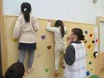 ボルダリングを楽しみました。4月からは小学生になります。いろんなことができるようになりました。コマ回し、縄跳びと友達や先生とどうやったらできるようになるかコツを伝え合い、共に成長してきました。