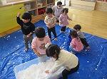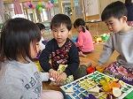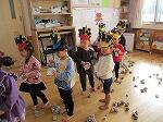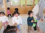 節分での豆まき、部屋での雪遊び、お話し会、パズル遊びと体も大きくなり、言葉もたくさん増えておしゃべりが楽しくなった1歳児ひよこ組さんです。4月からはあひる組になります。