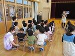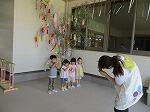 さくら組(3歳児)・あひる組(2歳児)・ひよこ組(1歳児)は各保育室で、保育者から七夕の由来をわかりやすく伝えてもらいました。