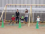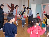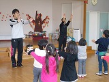 NPO法人生涯学習プロジェクトもとみやの遠藤さん・西さんから、体を十分に動かしながら友達と楽しめる運動遊びを習いました。