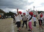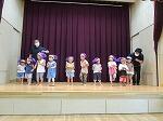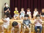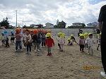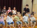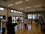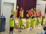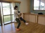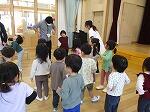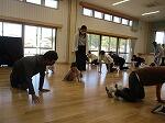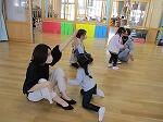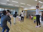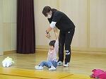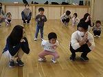 遊戯室での体操教室。まずは、準備体操。おうちの人からは「きつ~い」「これが準備体操?」と言う声もきこえました。日頃の運動不足解消になれますように。