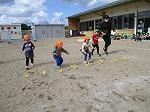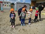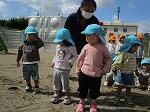 おうちの人が手を出したところに、タッチ!子供たちは楽しそうです。