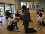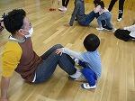 NPO法人「生涯学習プロジェクトもとみや」の本間さんと白銀さんが講師となり、親子で楽しめる、いろいろなふれあい遊びを教えていただきました。