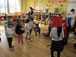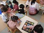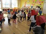 節分の豆まきでは、鬼に扮したつばめ組さんが怖くって動けなくなりましたが、廊下に出てくれたつばめ組さんに窓越しなら大きな声で掛け声を言ってできました。また、友達とやりとりをして遊べるようになりました。