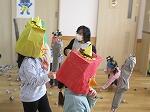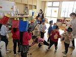 なんだろう?とびっくりしてみていた子どもたち先生たちが豆を投げてみせると、一緒にやり始め鬼退治ができました。