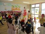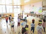 ひばり組(4歳児)・つばめ組(5歳児)は遊戯室で行いました。