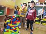 カプラで遊ぶのが大好きなさくら組さん。みんなで協力して根気強く大きな物を作れるようになりました。なりきって遊ぶことが大好きで、たこ焼き屋さんやピザ屋さんにもなって遊んでいます。