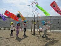 天気が良く、大空に泳ぐこいのぼりに向かってクラスごとにかけっこをしました。みんなで体操”へそへそパワー”を踊って体をたくさん動かし、子どもたちも外の気持ちよさを感じながら、笑顔いっぱい過ごしました。これからも、子どもたちが元気にたくましく大きくなっていってほしいです。