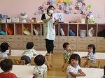さくら組(3歳児)・あひる組(2歳児)・ひよこ組(1歳児)は各保育室で、保育者から七夕の由来をわかりやすく伝えてもらいました。