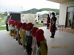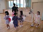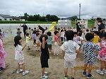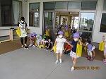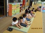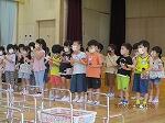 さくら組さん(3歳児)を真ん中にして、その周りをひばり組さん(4歳児)、つばめ組さん(5歳児)が囲みました。