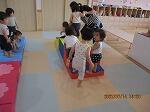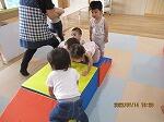 ひよこ組(1歳児)さんは、保育所の生活の流れに慣れ始めてきました。上手に歩いて、興味のある遊具までいけるようになりました。
