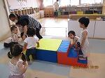 部屋の中では、くぐって遊べる遊具で体力作りをしています。