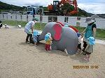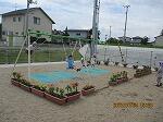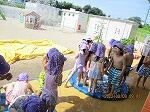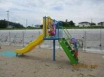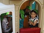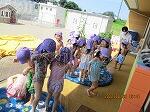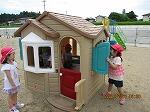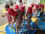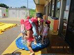 また、園庭の遊具にかけも水をかけて、楽しんでいます。