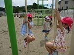つばめ組さん(5歳児)はさすがにブランコを自分でこげます。「せんせーい。見てて」と得意げです。