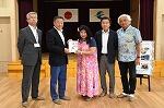 左から、松井教育長、高松市長、ホノルル福島県人会理事・リエゾン・森口マリアンさん、ハワイ日米協会名誉理事・大久保良市さん、ホノルル福島県人会・竹林篤さん