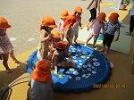 「金魚すくいやさん」(金魚をすくって、袋に入れてもらいます。金魚を選ぶのに時間がかかるほど、選ぶのを楽しんでいるお子さんもいました。)