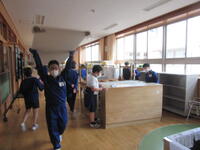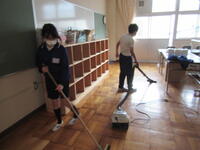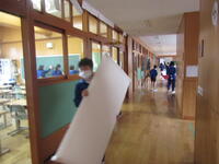 5年生の子どもたちがお手伝いに来てくれて、各教室の机やいすを、新年度の児童数に応じて搬出入したり、教室の物品などを移動したり・・・最後はていねいに掃除も!