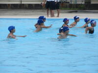 3.4校時には1年生が、小プールで校内水泳記録会を実施し、「宝ひろい」と「水中歩行」の記録を測定しました。