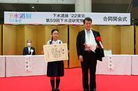 なお、「第61回下水道いろいろコンクール」の絵画・ポスター部門の表彰式については、令和4年8月2日(火)に、東京ビッグサイト1F特設会場で開催され、表彰状と記念品が、国土交通大臣から受賞者本人に手渡されました。