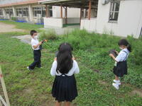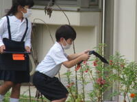 2学期が始まって1週間がすぎた今日8月30日(火)。1年2組の子どもたちが、4校時の生活科の時間、タブレットを持って校庭に出るのを見かけました。「夏から秋へと変わってきたなぁ。」と思うところを探して、写真に撮る活動に取り組むためです。