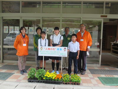「人権の花運動」とは、児童が協力し合いながら花を育て、その成長を観察することによって情操を豊かにし、「相手の立場を考え行動する心や思いやりの心を育てる」ことや「生命の尊さ、感謝の気持ちを体得する」という人権尊重の意識を身につけてもらうことを目的としています。