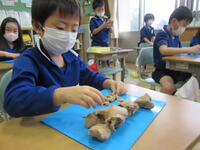 今日12月17日(金)の3.4校時、1年生が、図画工作科の「2がっきのおもいでをねんどであらわそう」の学習に取り組んでいました。