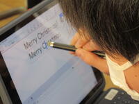 紙のカードが完成した後は、英語のタイピングの練習をかねて、iPadで作成するバージョンにも挑戦です。英語を「書く力」が身についてきたことが分かります。
