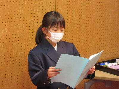 はじめに、1年生と6年生の代表の児童から、それぞれ2学期の思い出と3学期にがんばりたいことの発表がありました。2人とも、とても堂々としていて素晴らしかったです。