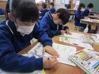 今日(1月13日 木)の3・4校時、2年生が図画工作科「あなのむこうはふしぎなせかい」の学習に取り組んでいました。