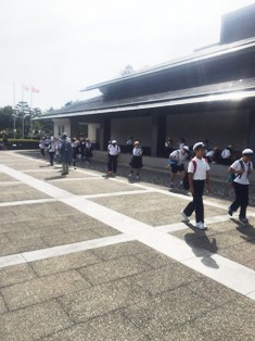 現在、県立博物館の見学をしております。アクシデント等もなく、予定どおり活動が進んでいますので、みずいろ公園に午後4時20分頃に到着すると思います。