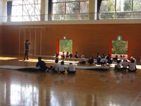 今日11月17日(木)の午前中、本宮第一中学校の体育館を会場として、本宮一中学区の特別支援学級交流会が開催され、本校のみずいろ学級、はなやま学級の子どもたちが参加しました。