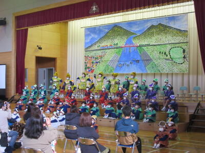 2年生は「劇 やさいばたけは大さわぎ 」を発表しました。ひとりひとりがしっかりとセリフを覚えて、大きな声で堂々と演技できました。なによりも本人達が楽しく演じることで、見ているこちらまで心が楽しくなってきました。自分たちで作った衣装を身にまとい、ノリノリの演技が、可愛らしかったですね。