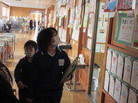 今日11月11日(金)の4校時には4年生が、5校時には3年生と5年生が、各教室の廊下を巡って、友だちの作品を鑑賞していました。