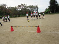 ゴールを上手く通り抜け、反対側のチームにボールが届くたび、「やったぁ!」という元気な1年生の声と「パチパチパチ」の拍手の音が、空にすいこまれていきました。