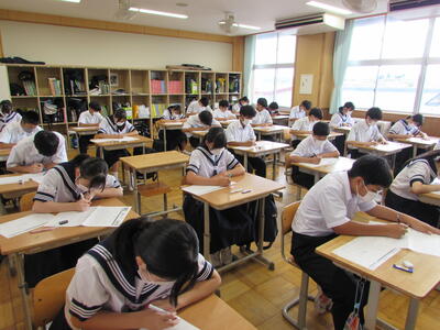 夏休みの学習の成果を発揮しようと、皆、真剣にテストに臨んでいました。