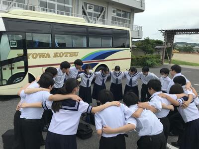 当日朝、円陣を組んで気合いを入れ、心を一つにして出発しました。