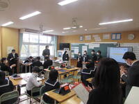 本日は小中英語パートナーシップ事業が行われ、1-3、3-1の2クラスが英語の授業公開を行いました。学級には県北教育事務所及び本宮市教育委員会の指導主事や、県内の多くの英語教員が集まり、本校生徒の授業の様子を見て行かれました。今回のような授業実践を今後も継続し、本校生徒の英語力向上に努めていきたいと思います。