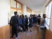 12月16日(金)小学生訪問が実施され、本宮小学校53名、まゆみ小学校53名 計106名の児童の皆さんが本校を訪れました。最初は緊張の面持ちで体育館軽運動場に集まった小学生の皆さんでしたが、授業参観、生徒会の発表、部活動見学などを経て徐々に緊張が解れ、新しく入学する本校での生活に期待感を高めていました。先輩である本校の生徒の皆さんも、部活動見学に来た児童に優しく説明する様子も見られ、先輩としての自覚が高まってきているようです。来年の4月、又会えることを楽しみにしています。