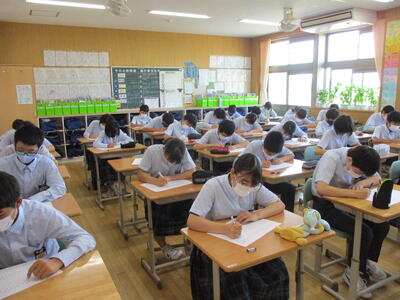 朝自習時間に、基礎学力コンテストを実施しました。目的は、学習意欲の向上と基礎学力を高めるためです。