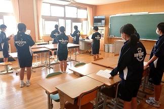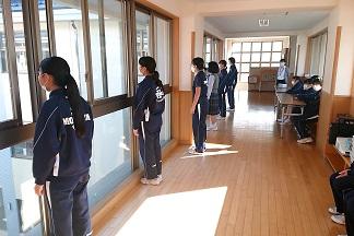 本日は合唱コンクールの練習風景を紹介します。生徒間の距離をあけたり、壁や窓に向かって歌ったり、屋外で行ったりと、各学級で感染防止のガイドラインを基に、工夫をしながら注意して行っています。
