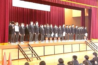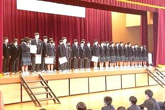 表彰を受けた生徒たちは少し緊張しながらも、成績や今後の抱負などを堂々と発表し、全校生から祝福の拍手を受けていました。誇らしげに胸を張る生徒のみなさんは、一回り成長した印象を受けました。